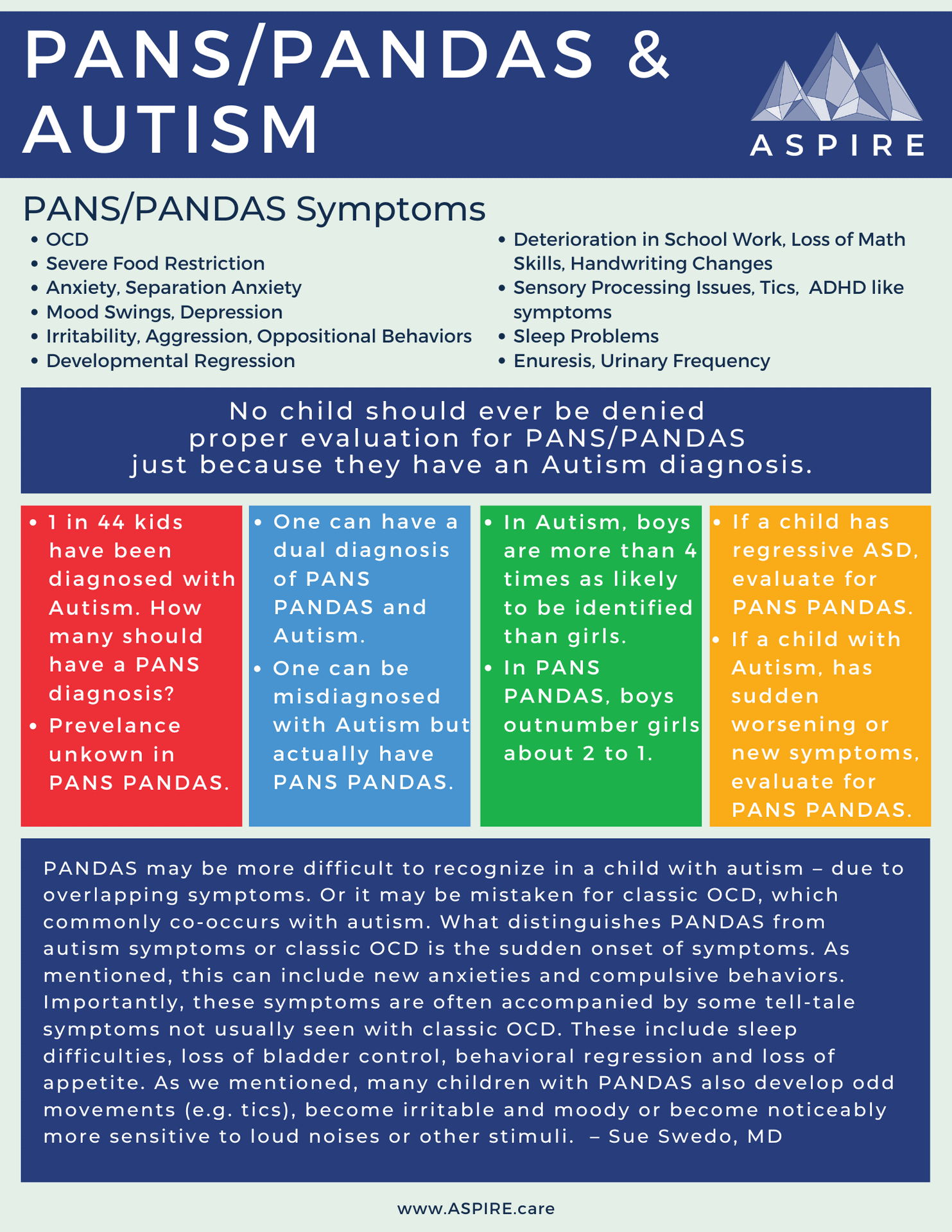 - No child should ever be denied proper evaluation for PANS/PANDAS just because they have Autism or another diagnosis.
