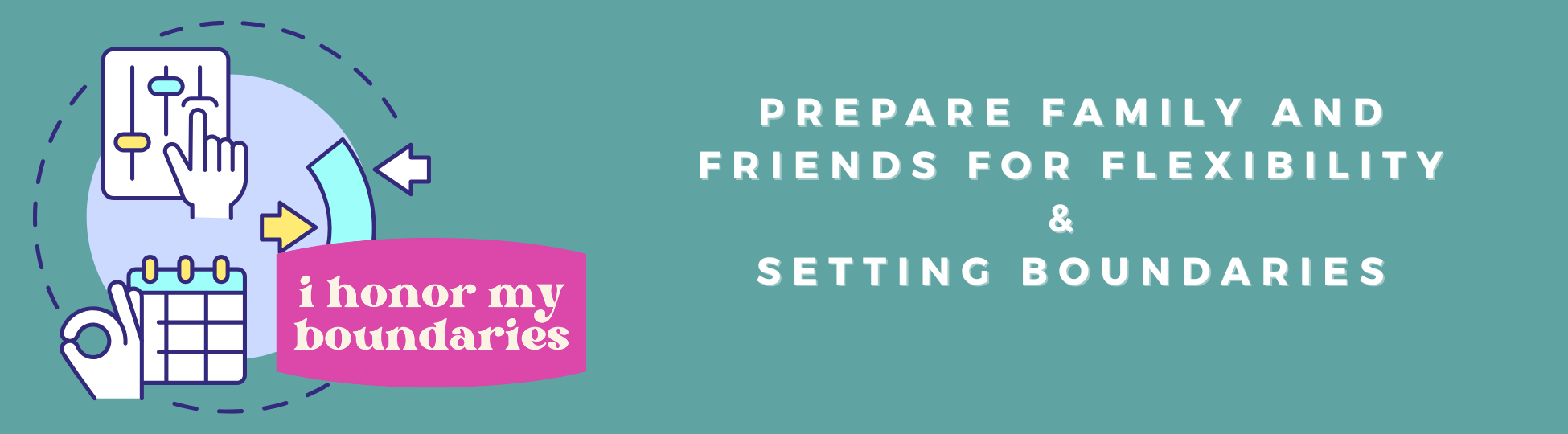 - Let hosts know ahead of time that you or your child may need breaks and ask where they can go if they need space.