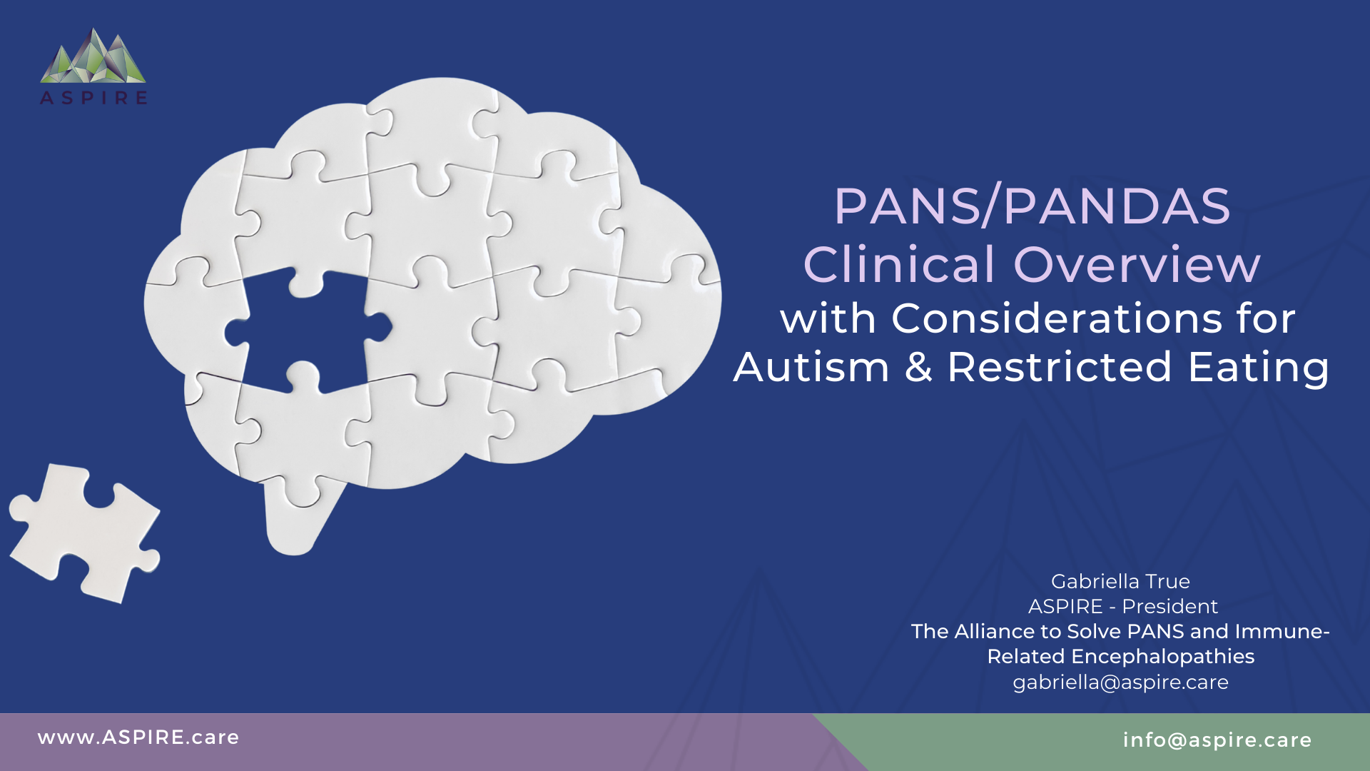 As part of their clinical education offerings, Gabriella True, ASPIRE President, presented a comprehensive overview of PANS and PANDAS, with particular attention to how these neuroimmune conditions may present in autistic individuals and how restricted eating may reflect more than behavioral or developmental factors alone.