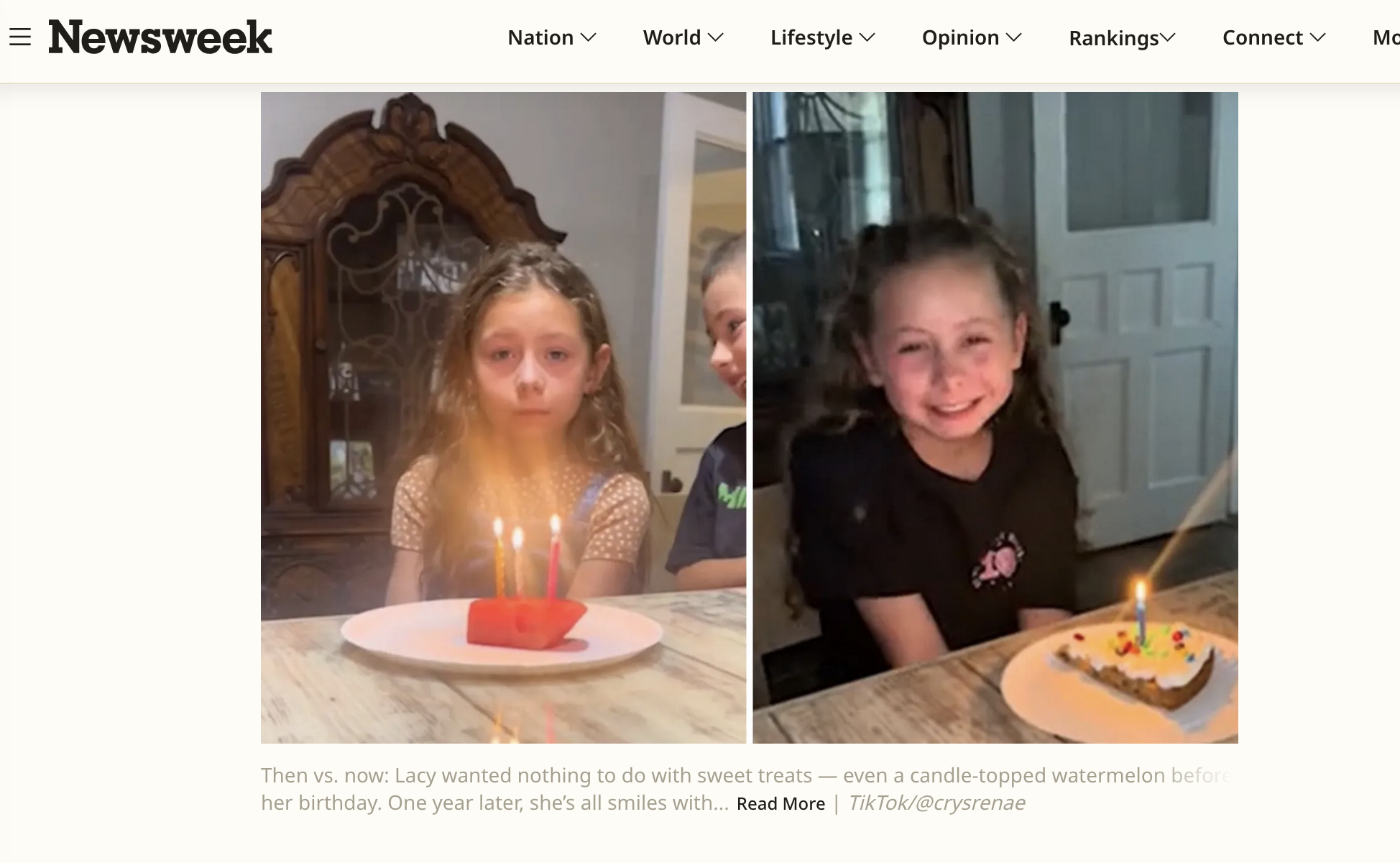 Recently, Crystal shared a TikTok video on (@crysrenae) showing Lacy on her ninth birthday, sitting in front of a watermelon wedge with candles, her face blank beside her excited younger brother. The clip then cuts to this year: The same girl grinning from ear to ear in front of cake. The transformation has struck a chord online, drawing almost 40 million views.