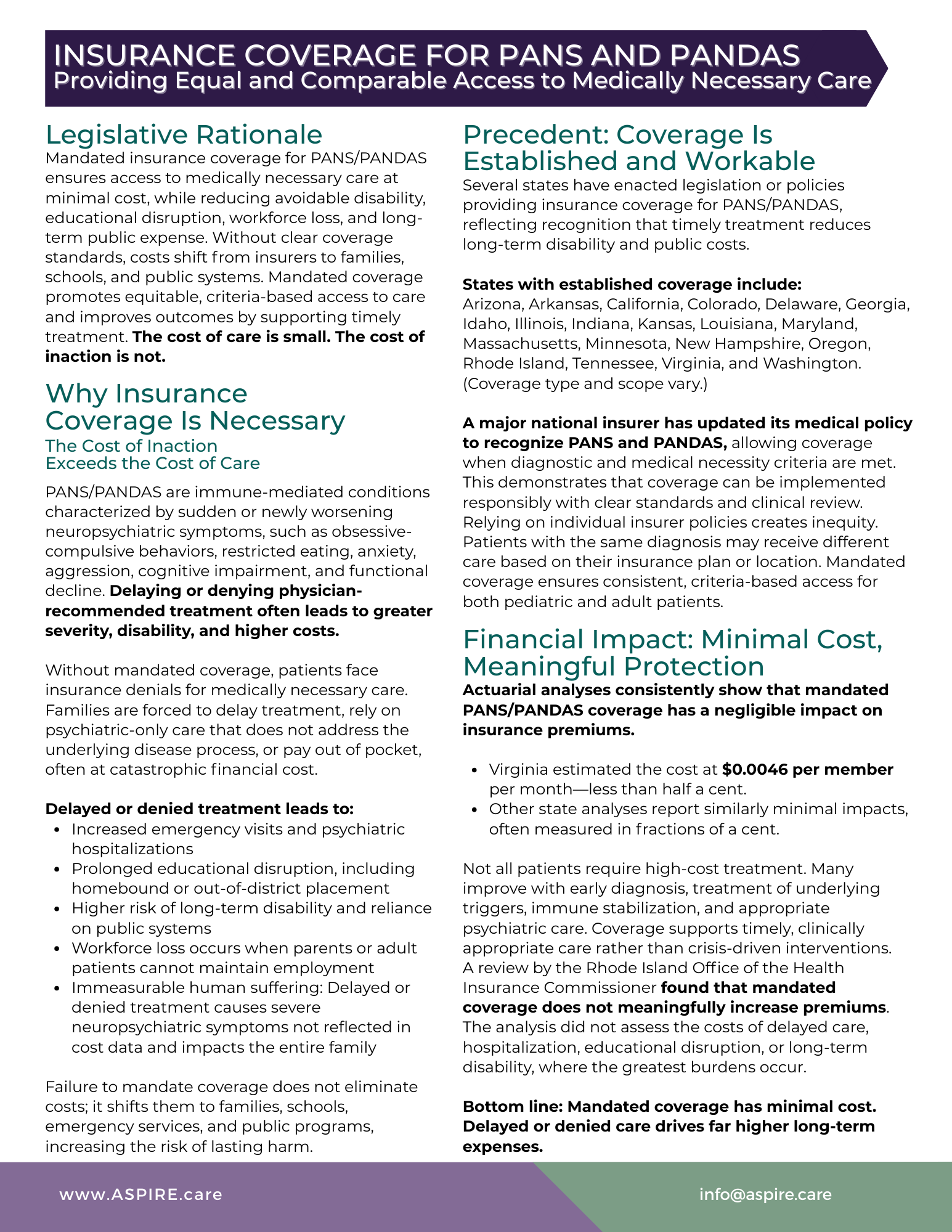 Insurance Coverage for PANS and PANDAS aspireMandated Insurance Coverage for PANS and PANDAS