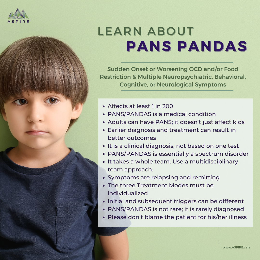 - Did you know OCD, Anxiety, Tics, ODD, Eating Restrictions can be caused by an infection and treated medically? Learn about PANS PANDAS today! www.aspire.care #PANSPANDASawareness