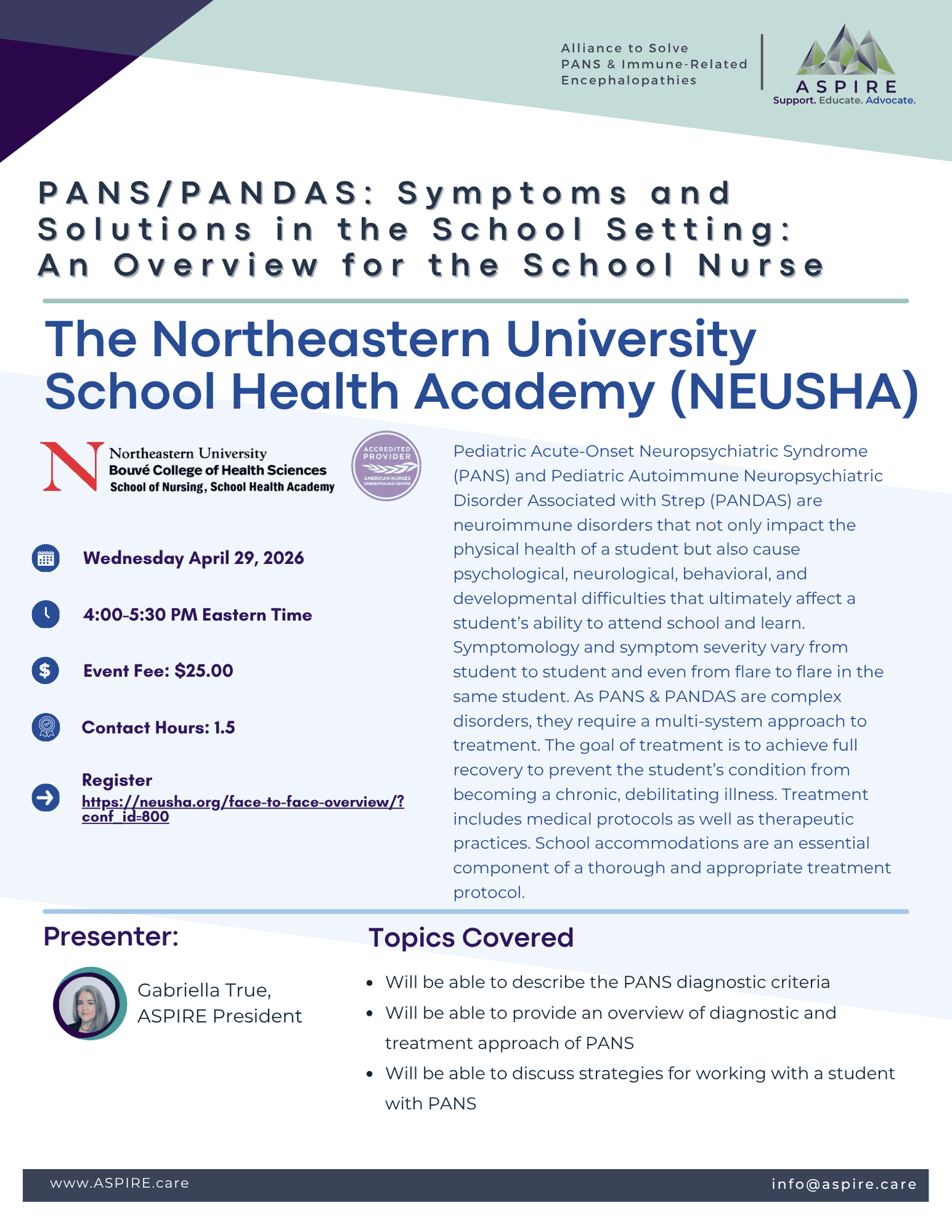 Presenter – Gabriella True, ASPIRE President